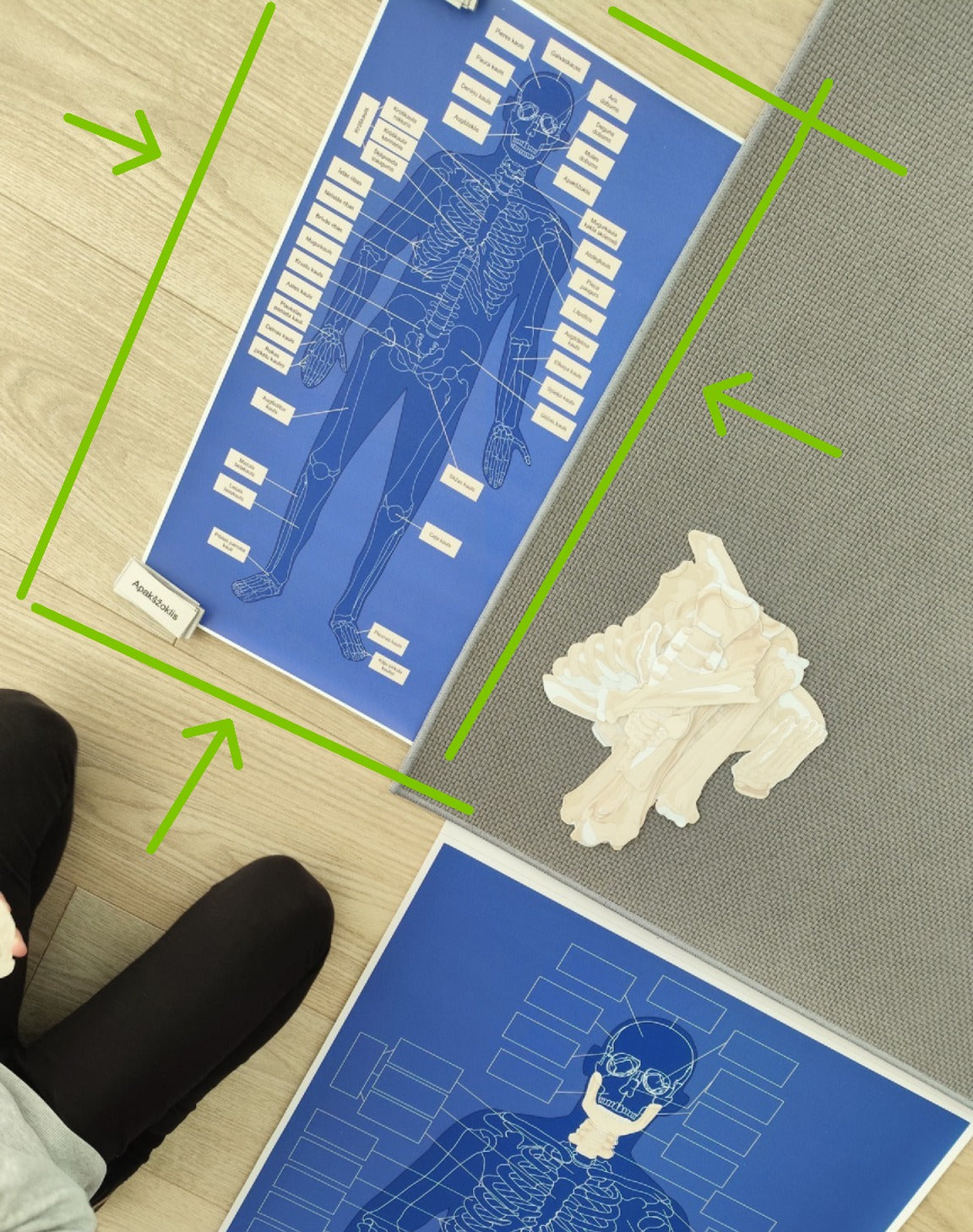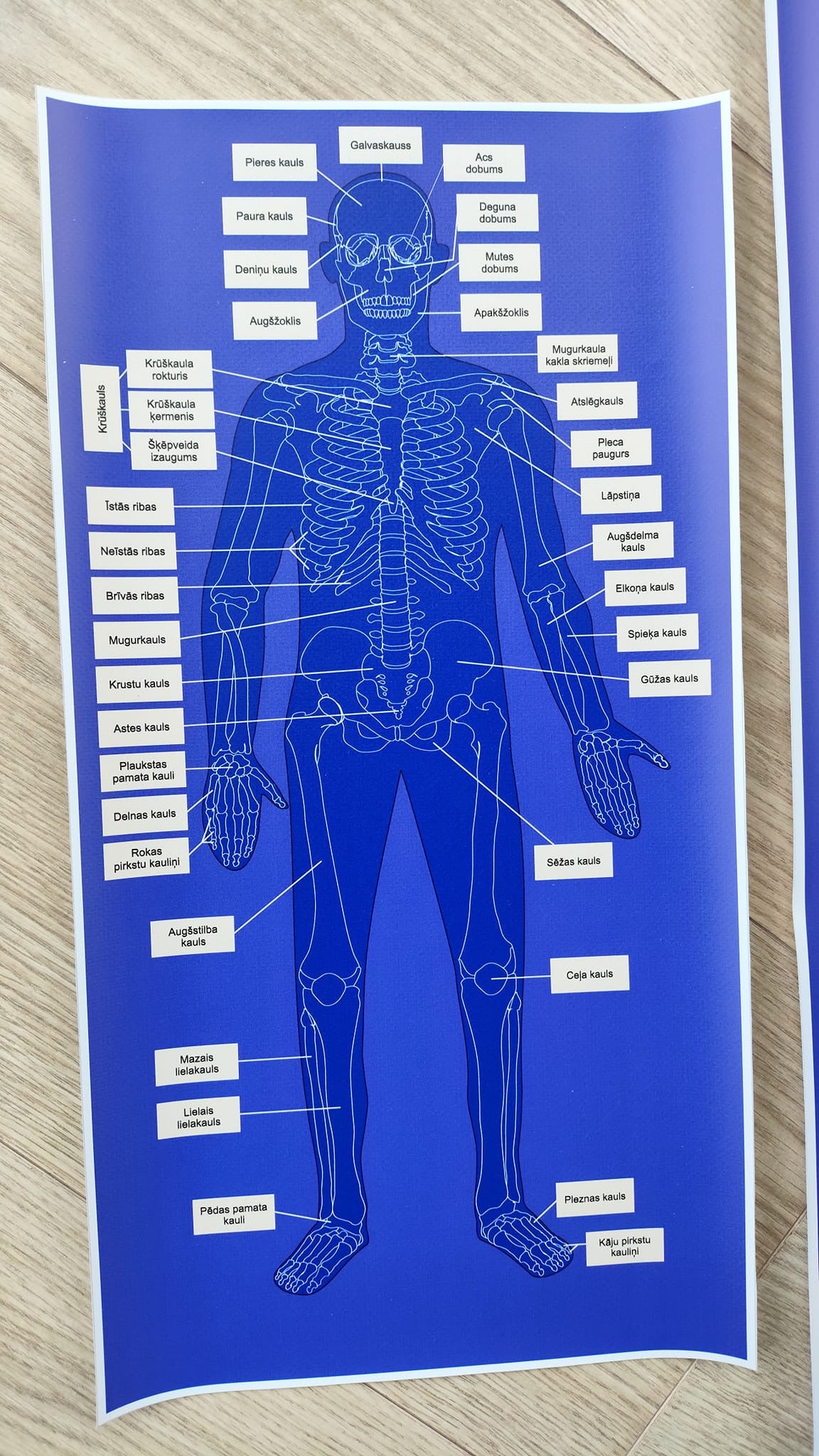 Cilvēka skeleta kontrolkarte ar kaulu nosaukumiem
