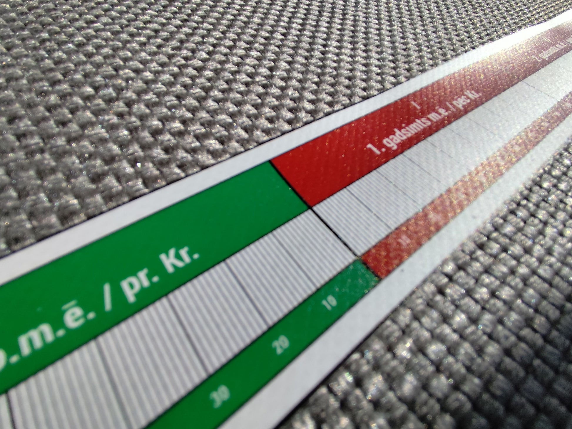 Druka uz banera materiāla. 4,5 cm x 674 cm. Klāt izprintējamas kartiņas PDF formātā.